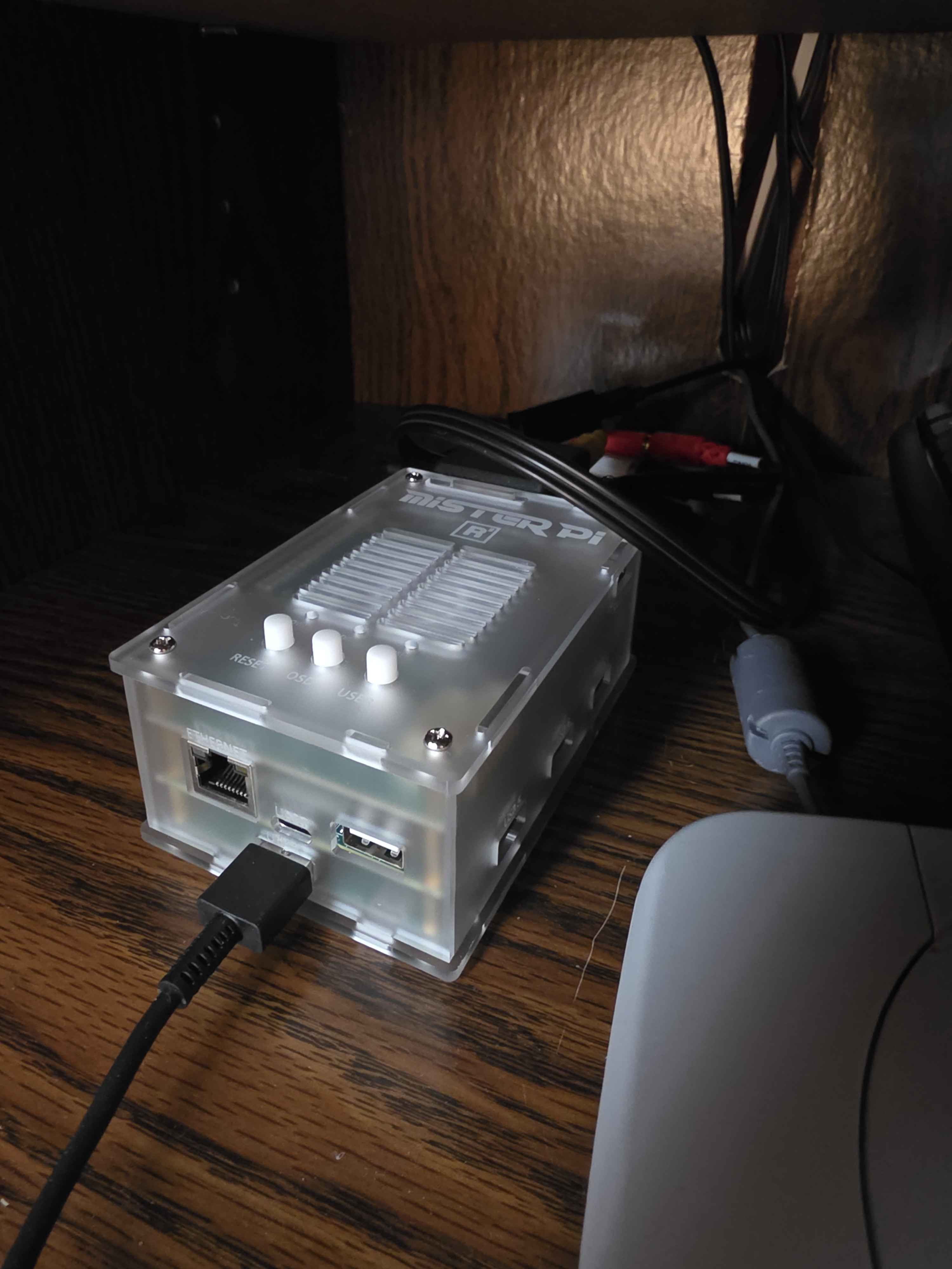 (Apologies for poor cable management in this pic; it shares a shelf with my old PS and the only keyboard I own without RGB that I can plug into my old systems without driver incompatibility )