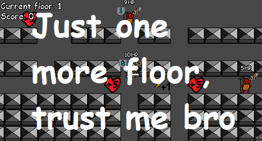 Yesterday I made a game in 1 hour where you just go up a floor to fight tougher enemies. The tower is procedurally generated but seeded so it will be the same for everyone who plays. I also think I accidentally made a secrets-based game although I did not put the secrets in there myself so even as the dev I’m still discovering new things.