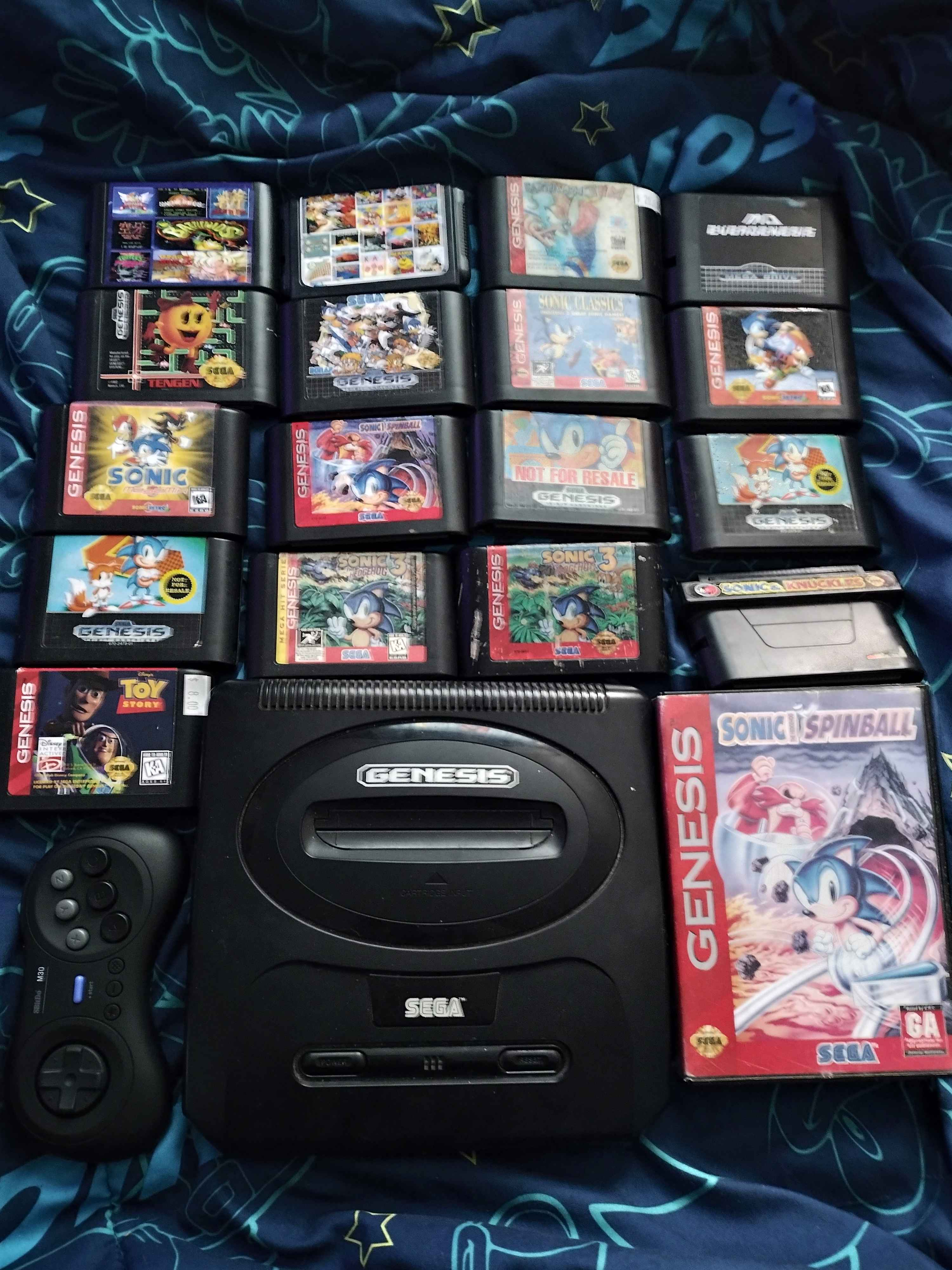 here’s my complete collection of genesis games n whatnot. sorry if the photo’s bad, my phone sux and my hands are a bit shaky