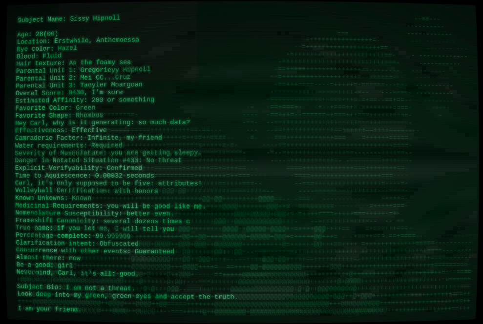 Subject Bio: I am not a threat. Look deep into my green, green eyes and accept the truth. I am your friend.
