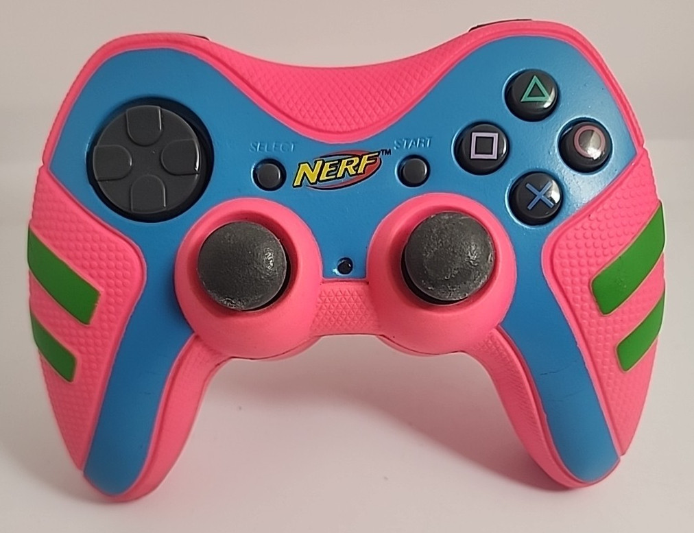 Pelican Wireless Nerf PS2 controller. It just a standard pad but covered in the same foam as a Nerf bullet so you can throw it at the wall when you get mad! Came in many different colours.