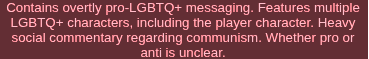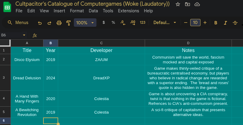 It almost feels like they decided not to have more than three strict, easily manipulable categories they could slap on whatever. They barely follow their own rules on many levels, particularly when listing games they don’t consider woke.