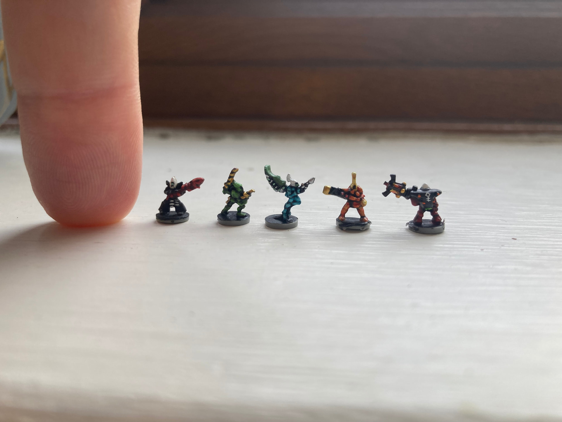 Been painting some 6mm scale miniatures recently. Here are my test patterns for eldar aspect warriors