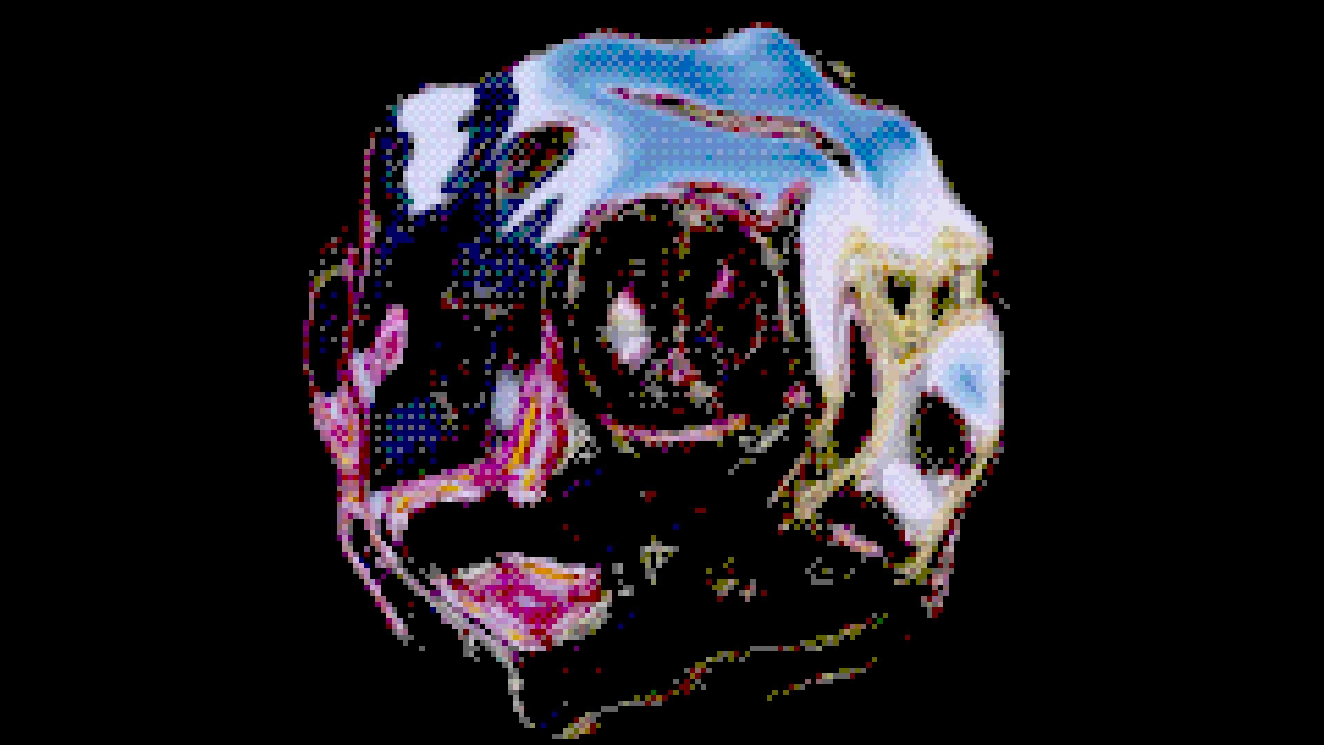 I made a blob with some quantization and dithering post processing! it is animated but iunno how to link stuff from bluesky that’s not just sending the link so. I’ll do that lmao
